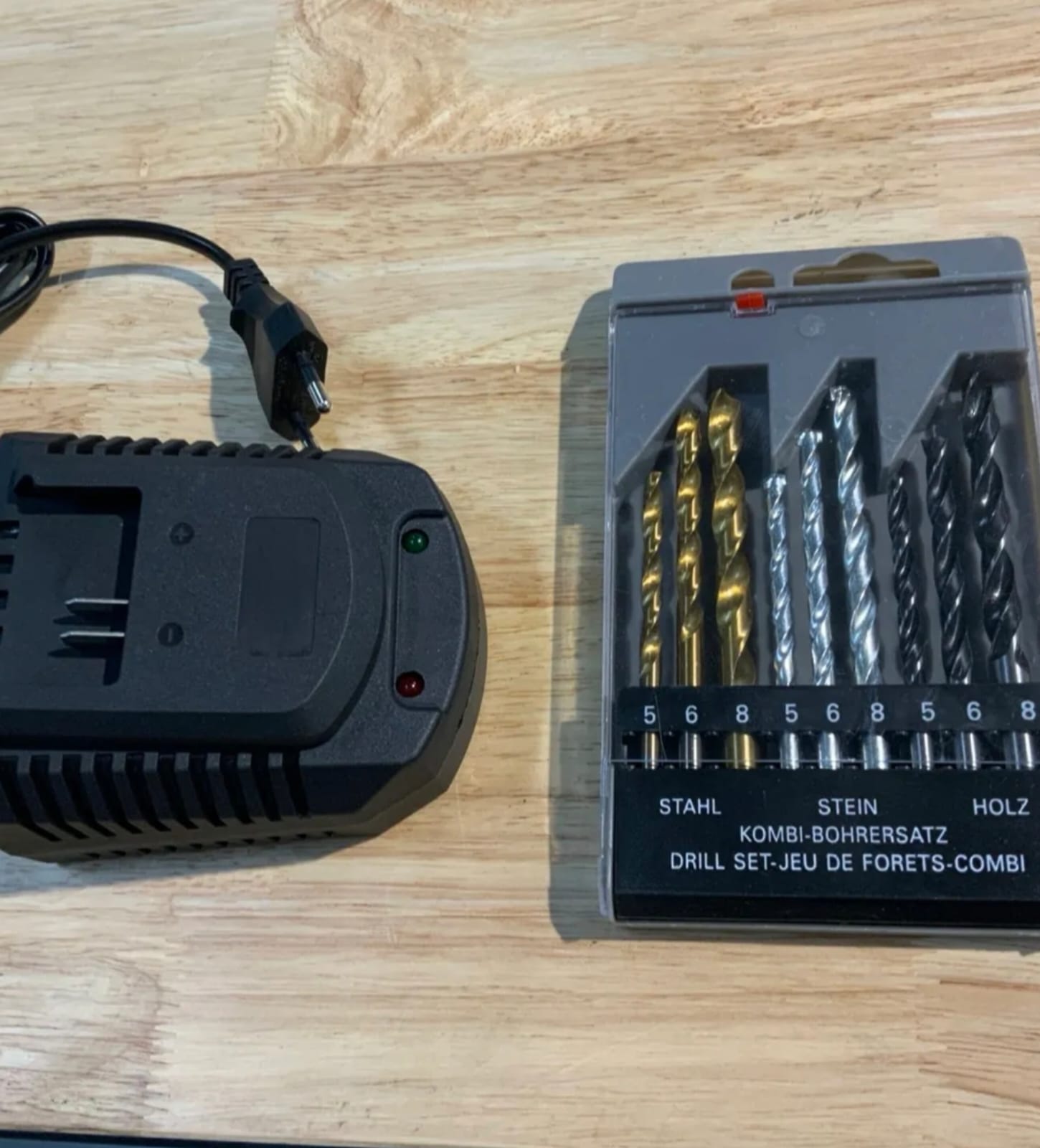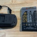 W zestawie są dwa akumulatory, ładowarka oraz zestaw wierteł i tarcz.