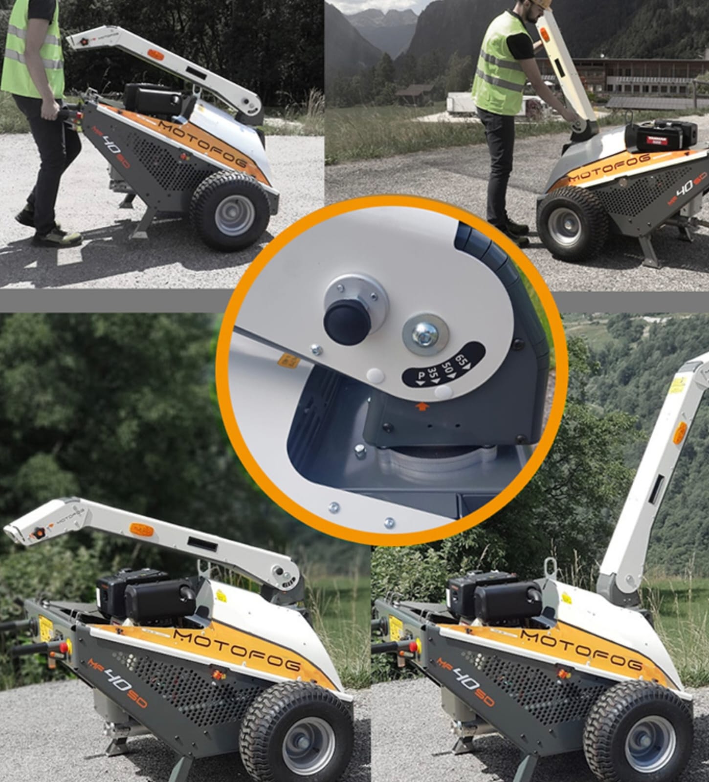 Został wyposażony w silnik Diesla (Yanmar), który napędza pompę wysokociśnieniową, pozwalając na zraszanie na odległość do 35 metrów. Urządzenie ma maszt z 270° oscylacją, co ułatwia sterowanie, oraz kieszenie na wózki widłowe, które ułatwiają transport.